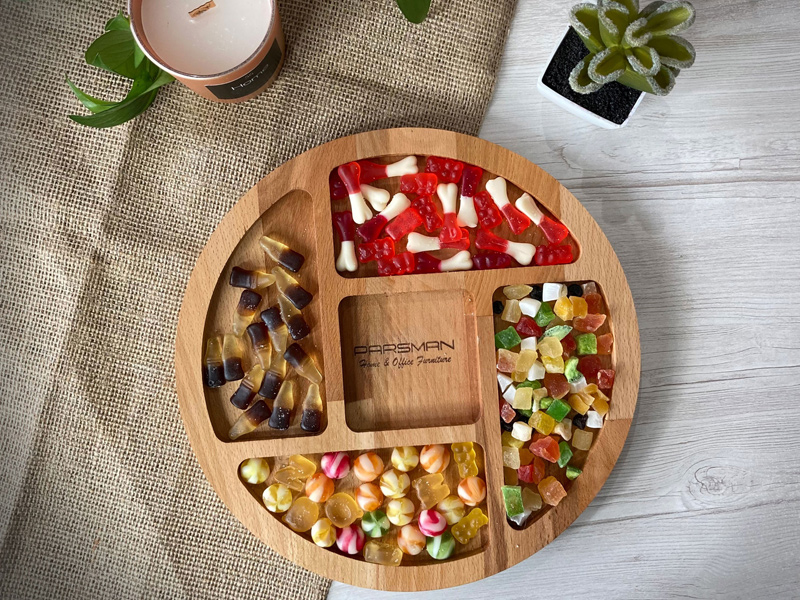 اردو خوری دایره 5 خانه با طراحی ساده و مینیمال برای استفاده در دورهمی و مهمانی ها آماده سفارش شما عزیزان است. این محصول از چوب فینگر جوینت راش درجه یک گرجستان ساخته شده و با روغن صد در صد گیاهی مخصوص پوشیده شده است،این روغن برای سلامتی انسان هیچگونه ضرری نداشته و دارای گواهی سلامت می باشد ،با وجود این روغن یک لایه محافظ ایجاد شده به همین دلیل این ظرف قابل شست و شو می باشد.